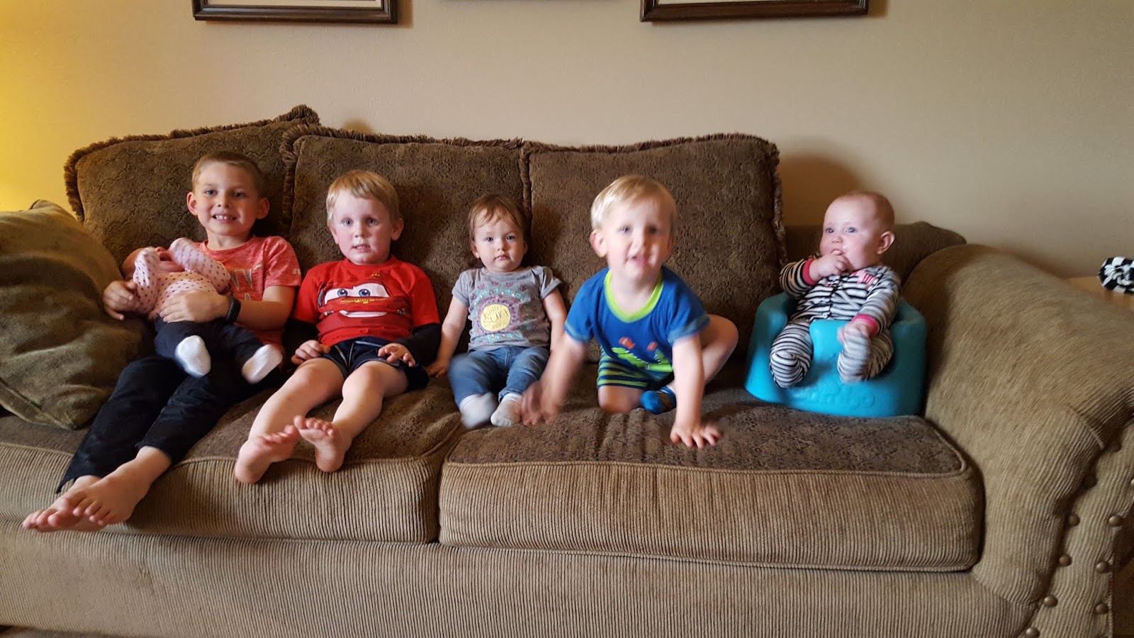 Myles, Henry, Elowyn, Sam, Hannah and new cousin, Shiloh |